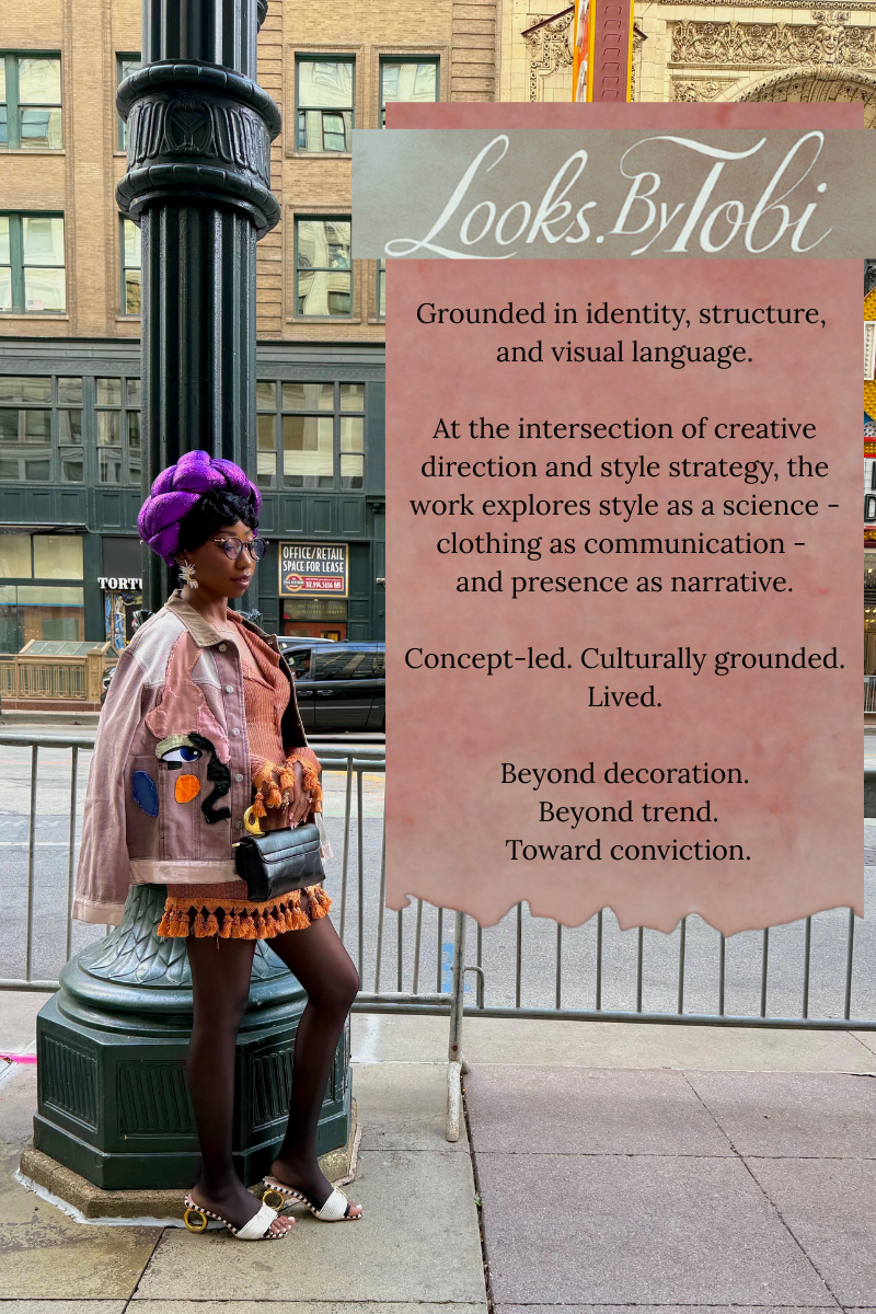 She now finds herself at the beautiful intersection of alignment and purpose. After years of freelance styling and innovative endeavors, she officially launched Looks.ByTobi LLC. in September 2025. As Founder, Creative Director & Style Strategist, she uses her many talents, including style, emotional intelligence, and relatability, as a bold introduction to her visionary mindset.